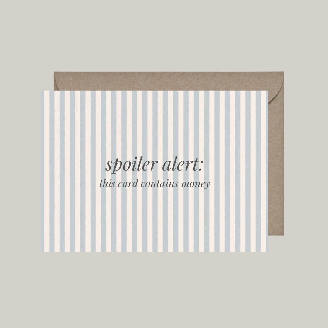 Tekst: 'spolier alert: this card contains money'