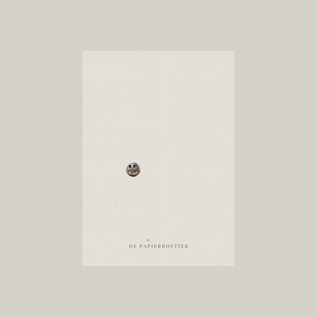 Dit fijne kaartje werd voorzien van een handgemaakte pin. Op de achterkant van het kaartje is er plaats voor een klein persoonlijk berichtje.