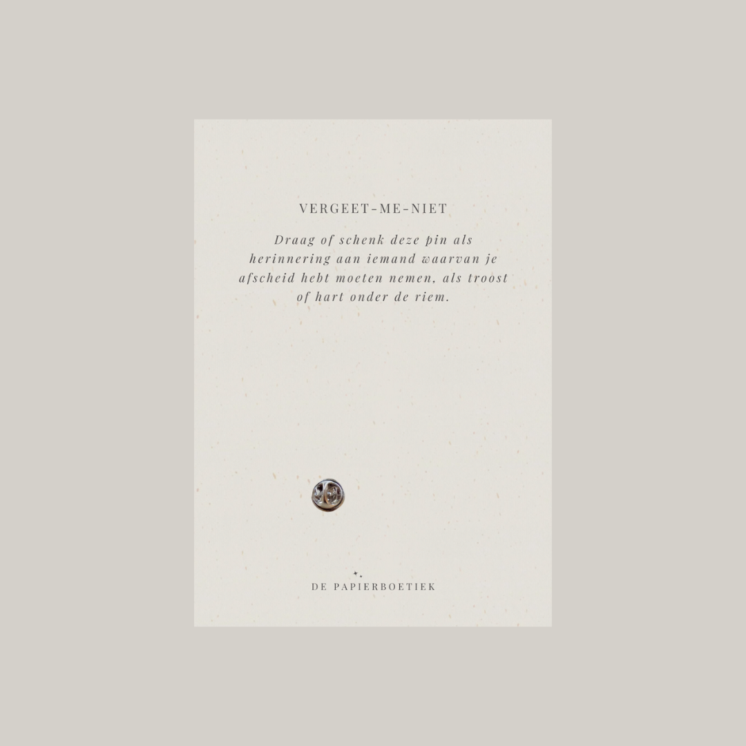 Draag of schenk deze pin als herinnering aan iemand waarvan je afscheid hebt moeten nemen, als troost of hart onder de riem.