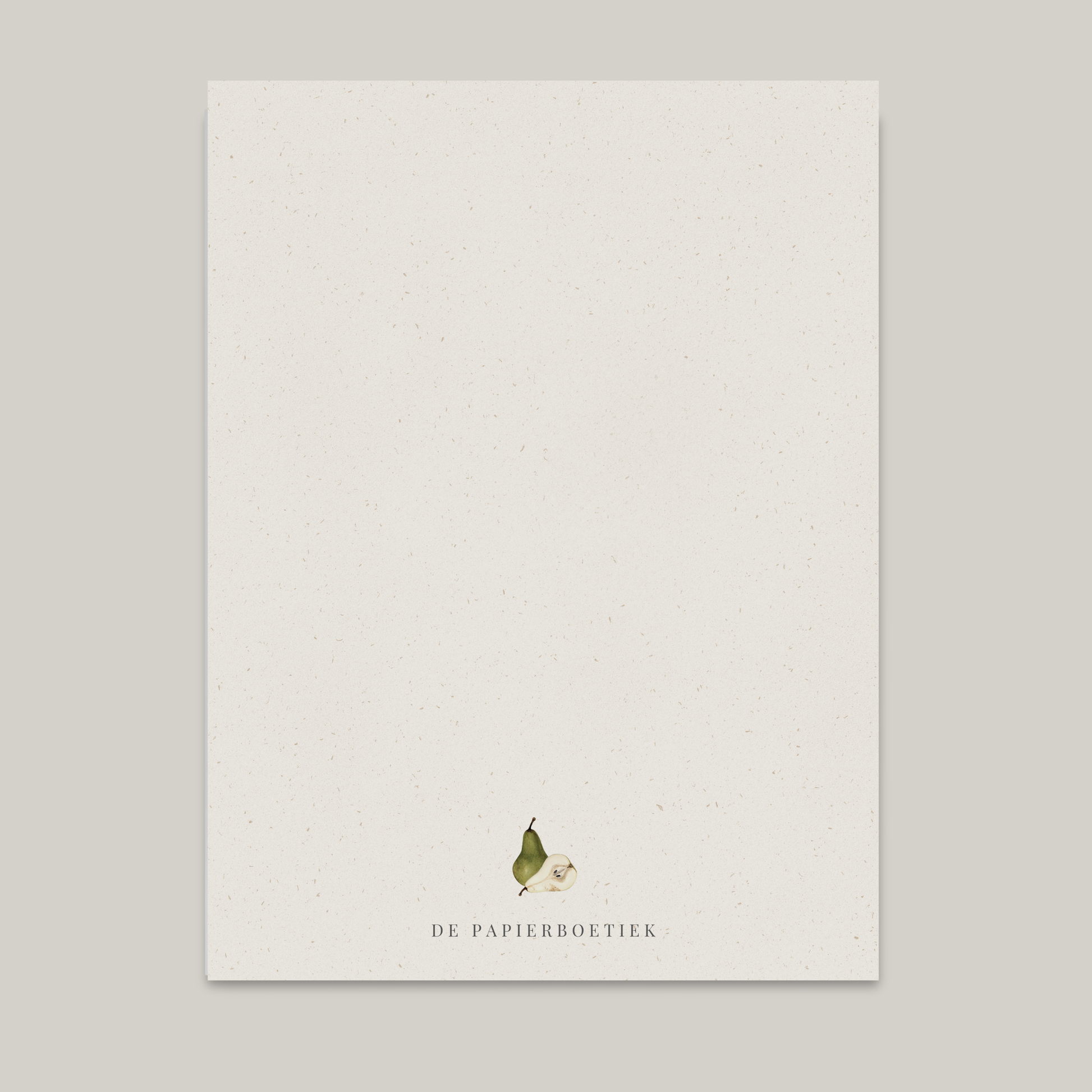 Het notitieboekje werd gedrukt op duurzaam papier, gemaakt van 100% gerecycleerd landbouwafval. Het kleine vezeltje in het papier geeft het boekje een rustieke uitstraling.