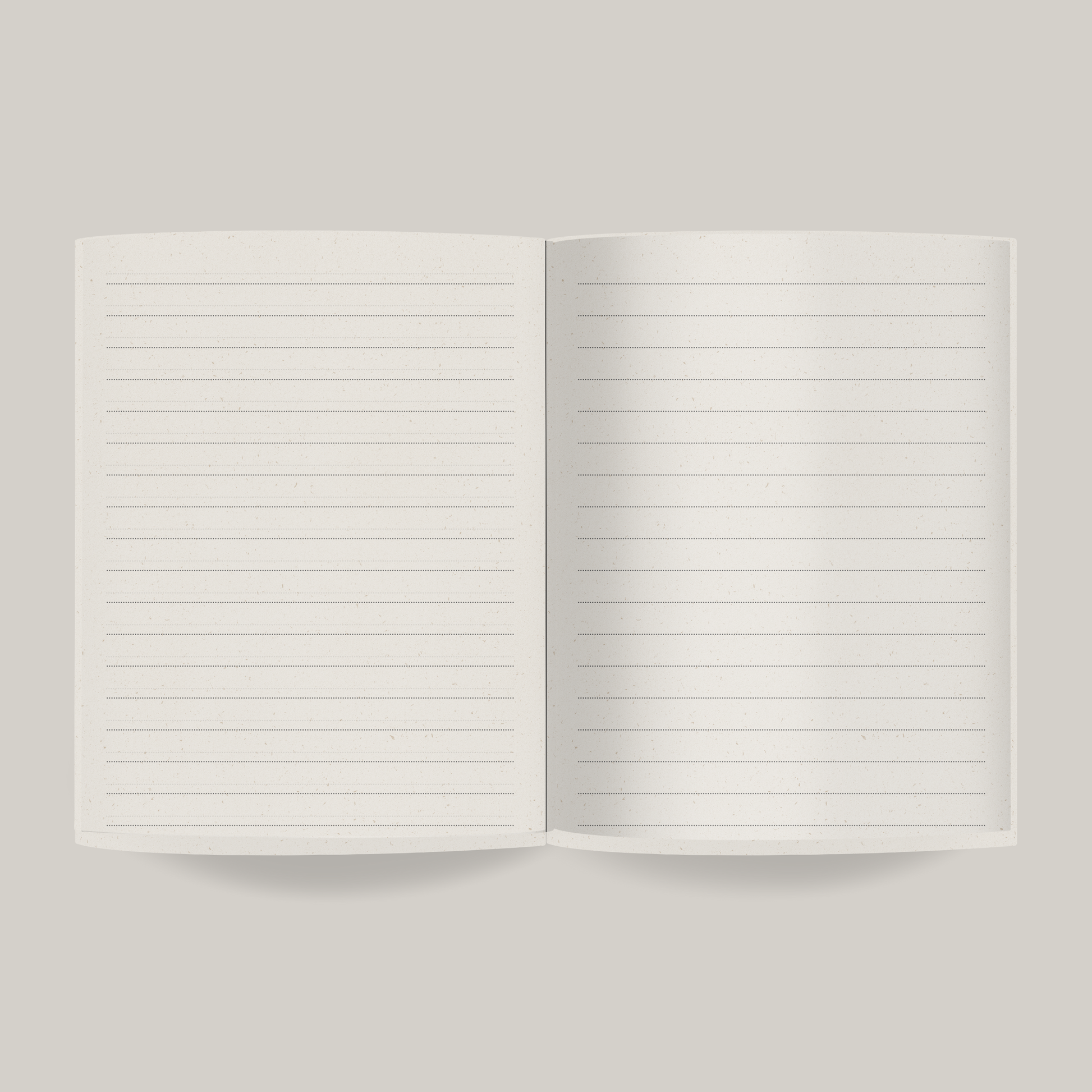 Het notitieboekje werd gedrukt op duurzaam papier, gemaakt van 100% gerecycleerd landbouwafval. Het kleine vezeltje in het papier geeft het boekje een rustieke uitstraling.